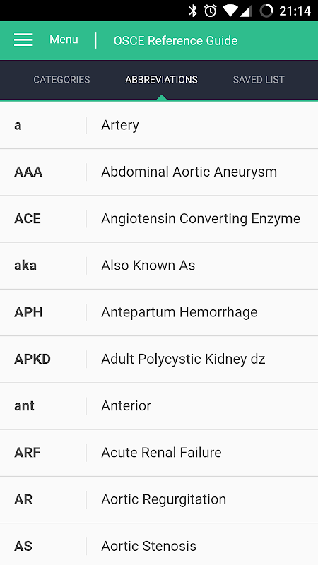 Bir kısaltmalar listesi sık tıbbi uygulama boyunca kullanılan anahtar sözcük hatırlamanıza yardımcı olması için kullanılabilir.