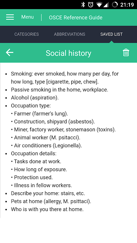 Detaylı referans malzeme öğrenciler kapsamlı bir tanı değerlendirmek amacıyla hastalara sormak için beklenen soru türünü tanımlayan 'Tarih' hazırlanması için dahil edilir.