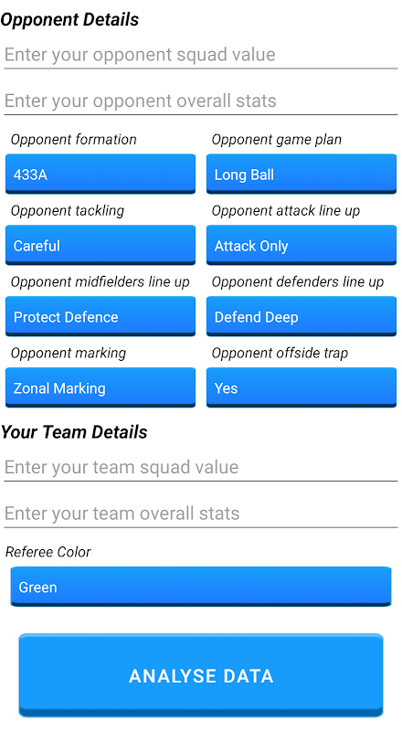 Rakibinizin dizilişini, oyun planını, müdahalesini, markajını seçin ve rakibinizin kadro değerini, takım genel istatistiklerini ve ayrıca takımlarınızı sağlayın ve akıllı bir karşı taktik edinin.