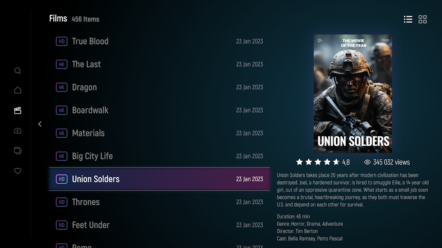 OTT aboneliklerinizi verimli bir şekilde düzenleyerek akış deneyiminizi kolaylaştırmak ve geliştirmek için tasarlanmış en üst düzey medya oynatıcı olan Ott + Player Pro ile tanışın. Modern ve optimize edilmiş arayüzümüz, hızlı gezinme ve kusursuz içerik organizasyonu sağlayarak size daha keyifli bir görüntüleme deneyimi için inanılmaz yetenekler sunar.