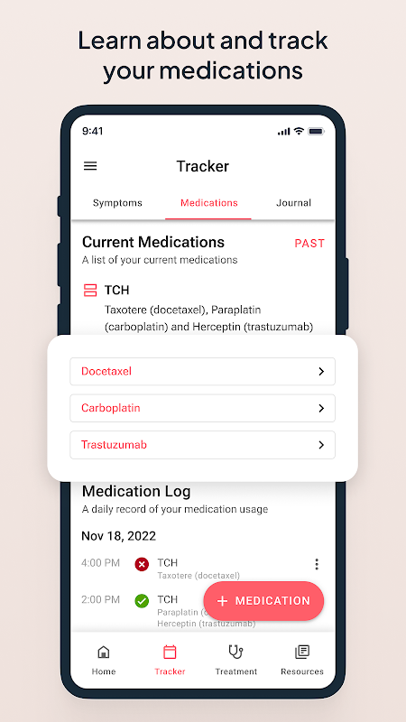 • Semptom yönetimi ve takibi – ilaçlarınızın ve terapilerinizin size nasıl hissettirdiğini izleyin ve sağlığınızın iyileşmesine yönelik ilerlemenizi takip edin.