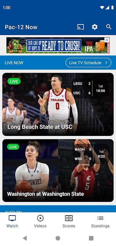 • Pac-12 Insider akış kanalında ÜCRETSİZ canlı oyunlar ve programlar.