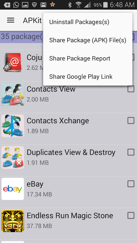 With App Manager or APKit you can easily share apps over email or SMS, find security and other important information about your apps, uninstall multiple apps, backup apps in the phone or cloud, and get detailed app reports.