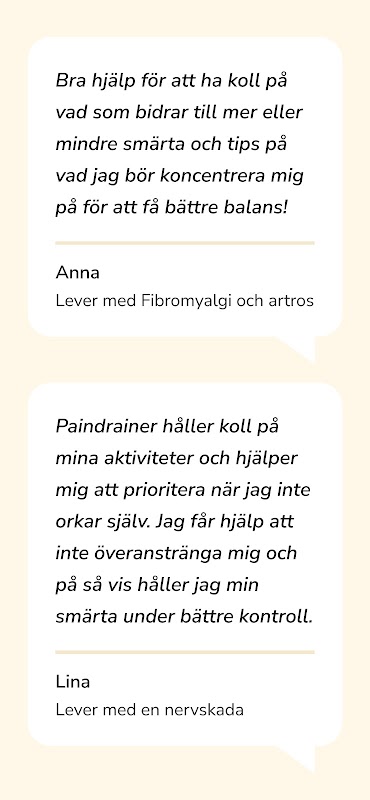 Paindrainer günlük aktivitelerinizi ve ağrı seviyelerinizi analiz eder ve mümkün olan en iyi fonksiyonel yetenek ve ağrının hafifletilmesi için kişisel aktivite dengesine doğru sizi yönlendirir.
