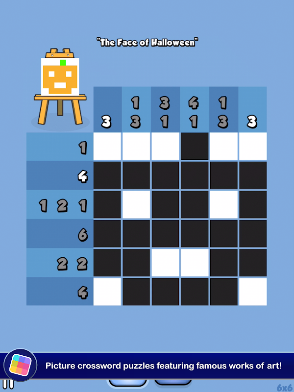 Eserler, 5 x 5'lik küçük ızgaralardan devasa 40 x 36 canavarlara kadar çeşitlilik gösterir. Toplam 150 bulmaca, her biri kendi benzersiz temasına sahip 15 farklı galeride gruplandırılmıştır. Çoklu zorluk seviyeleri, öğrenen bir oyuncunun bile daha büyük işlerin üstesinden gelmesine izin verir. Sezgisel dokunmatik boyama kontrolleri ile herkes tek bir parmakla usta bir sanatçı olabilir. Tüm bulmacaları tamamladınız mı? Mystery Masterpiece moduna meydan okuyun ve minimum ipucuyla ne kadar ilerleyebileceğinizi görün.