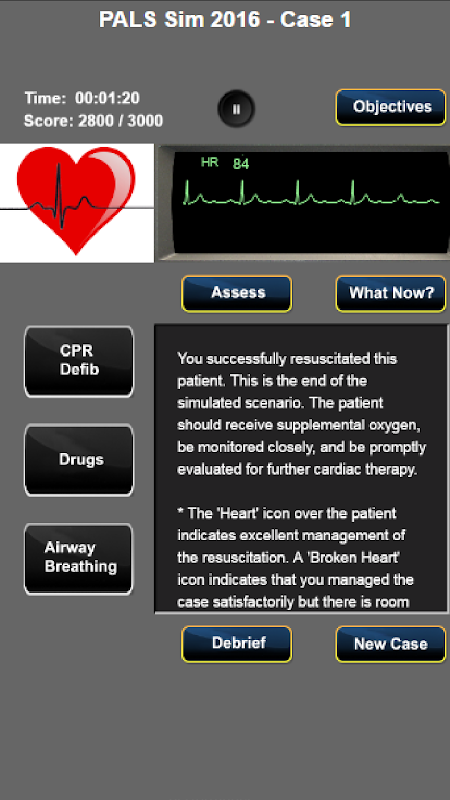 Bu uygulamada yer alan 8 senaryo, Kathleen Ventre tarafından yazılmıştır. İlk dört vaka ventriküler fibrilasyonu kapsamaktadır. Sonraki iki bradikardi ve son iki olgu supraventriküler taşikardiyi kapsıyor. İlk dava ücretsizdir. Kalan 7 vaka, uygulama içi satın alım için geçerlidir.