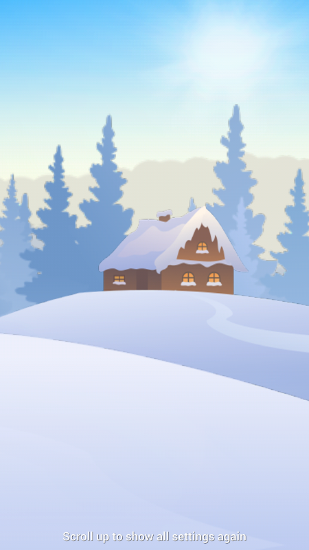 Gün (özel zaman ya da gerçek zamanlı) zamanına göre paralaks kaydırma ve dinamik gökyüzü, güneş, ay ve peyzaj renkleri ile bir resimli kış manzara. ücretsiz versiyonu tamamen işlevseldir ama çoğu ayarlar kilitlenir. Tam sürüm gerçek zamanlı modu dahil olmak üzere, tüm ayarlara erişim olsun.