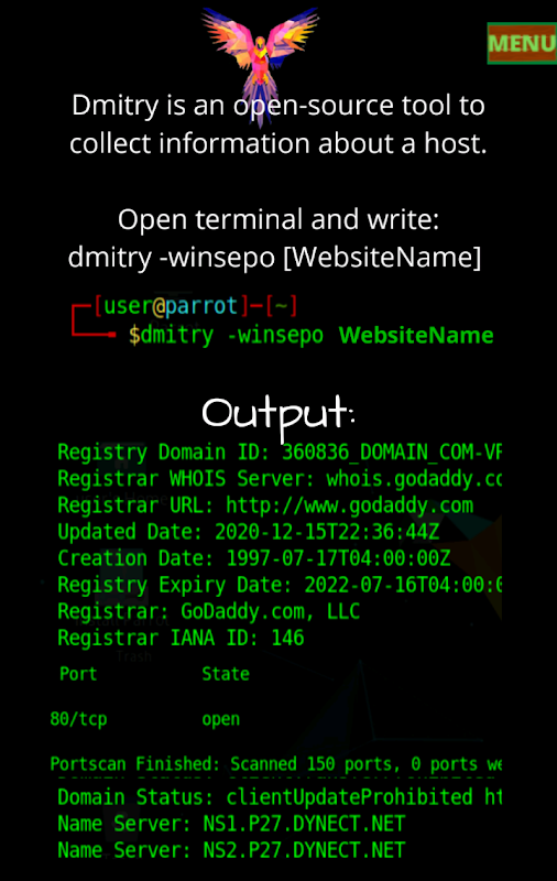 This app has been developed solely for educational purpose. Use Parrot OS : Parrot Linux with caution and take permission before analyzing websites.