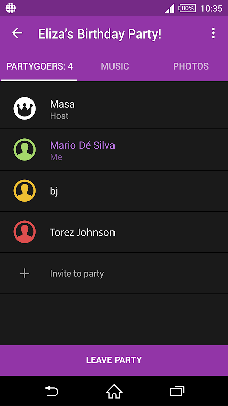 PartyShare arkadaşlarınızla gerçek zamanlı olarak müzik ve fotoğraf paylaşmanızı sağlar.