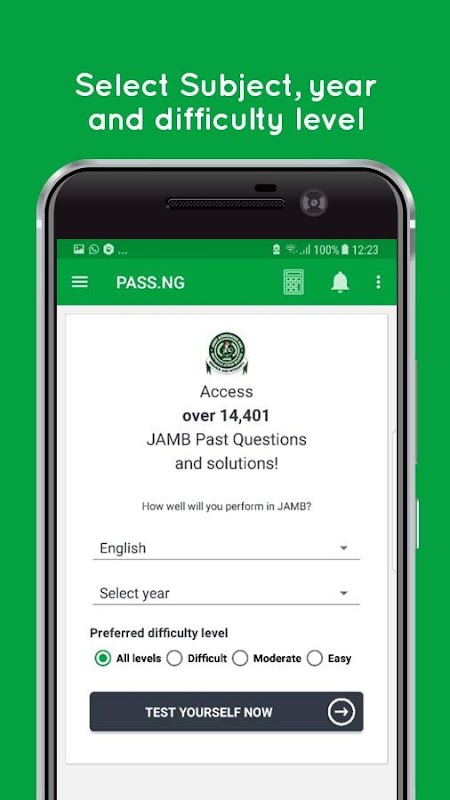 PASS.NG is Nigeria's No.1 e-testing platform which helps students/candidates prepare for Nigeria’s most important admission examinations & Job Prep Test: JAMB UTME CBT, POST-UTME, WAEC, NECO, COMMON ENTRANCE, NPOWER Recruitment Prep Test among others.
