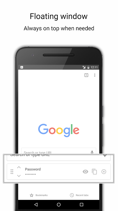 - Kayan pencere - Basit bir musluk istediğiniz whereever size şifreleri kopyalamak için izin verir ve her yerden PassK uygulamaya erişmek için kolaylaştırır diğer uygulamalar üstünde yeni bir pencere, tanır