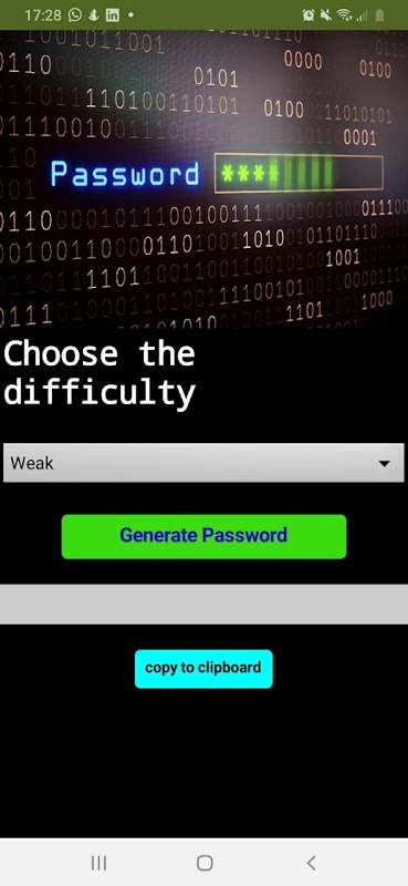 The application has 3 options to generate password, where you can choose weak, intermediate, or strong passwords.