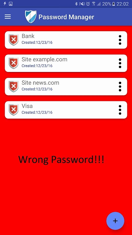 Yanlış ana parola gösterge uygulamanın arka planı kırmızıdır.