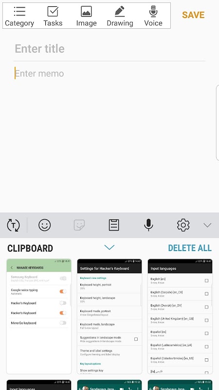 If you find yourself typing similar text over and over again, such as email, address, phone number, greeting messages, etc., then this free Copy & Paste Keyboard app is ideal for you to save time. Simply go to the main interface and create a few templates that you might use frequently. When you need to fill those sentences, simply tap on the globe icon to switch to this custom auto snap keyboard.