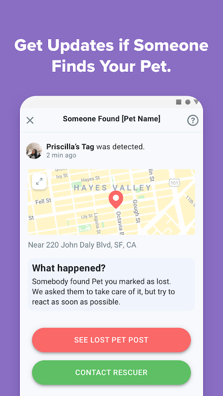 Kaybolan evcil hayvanların çoğu uzağa gitmez - bu yüzden topluluğunuzu toplamanız çok önemlidir. Pawscout’un Uygulaması arama sırasında yerel evcil hayvan severleri listelemeyi kolaylaştırıyor ve Bluetooth özellikli Etiketimiz (isteğe bağlı) kaybolan bir evcil hayvan yakınınızdayken kullanıcıları uyarıyor. Detaylı bir tıbbi profil, evcil hayvan kahramanlarının, yeniden bir araya gelene kadar tüylü BFF'nize özen göstermesine yardımcı olur.