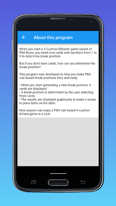 Bu program PBA kurallarına göre peri mola ve kolayca mola pozisyonları yardımcı olmak için geliştirilmiştir.