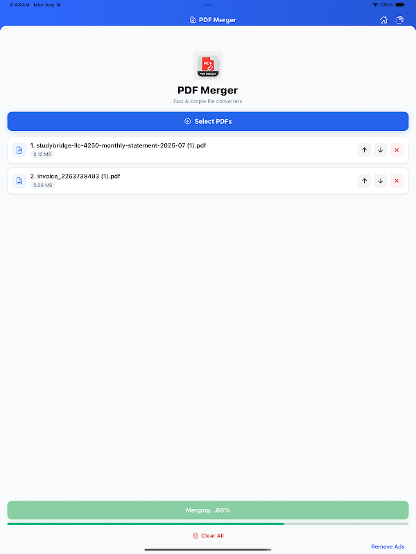 PDF Merger Expert, PDF'leri doğrudan telefonunuzdan birleştirmenin en hızlı ve en basit yoludur.