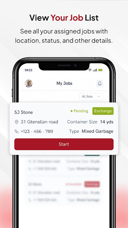 İş Ataması ve Ayrıntılar: Yeni iş atamaları için doğrudan mobil cihazınızda anında bildirimler alın. Konum, müşteri bilgileri, belirli bertaraf gereksinimleri ve özel talimatlar dahil olmak üzere kapsamlı iş ayrıntılarına erişin.