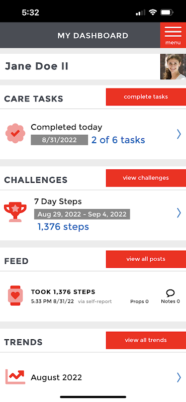 You may also be able to communicate with your health coaches and care team, set up reminders, participate in simple wellness challenges, privately connect with others, and more.