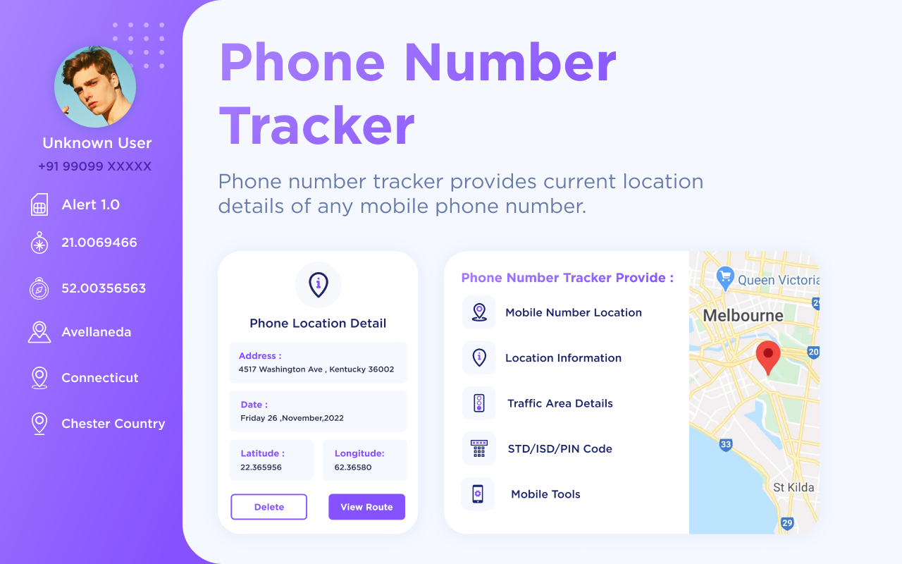 Canlı Telefon Numarası İzleyici, dünyanın herhangi bir ülkesinden herhangi bir telefon numarasını izlemenize yardımcı olur. Telefon numarasının şehir alanı, eyalet, ülke ve şebeke operatörü görüntülenecek ve GPS konumu haritalarda gösterilecektir.