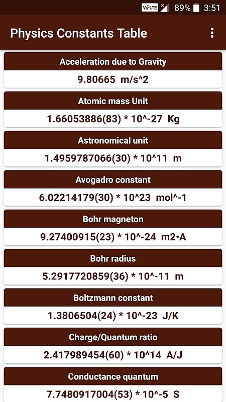 Fizik Sabit Tablo tablo biçiminde önemli fizik sabitleri sağlar. Hoş sunumu ile profesyonel kullanıcı arayüzü. Bir çok yararlı bir eğitim ve mühendislik yarar.