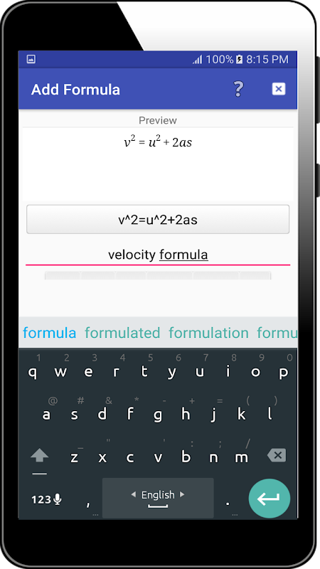 Eğer formül yazma ve app içine bu kaydedebilirsiniz app.Also bu fizik formülleri büyük bir liste okuyabilirsiniz.