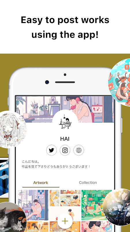 Gönderdiğiniz veya arşivlediğiniz kendi çalışmalarınız çerçevelenebilir ve bir koleksiyon olarak halka açık sergilenebilir. Favorilerinizi herkesle paylaşın! Ayrıca düzenli olarak düzenlenen toplama temalarına dayalı koleksiyonlar oluşturmanın keyfini çıkarabilirsiniz.