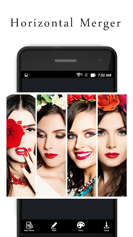 Pic Merger, fotoğraftan istediğiniz bölümü seçecek olan kırpma işlevini destekler. Pic Merger, fotoğrafınıza uygun bir görünüm veren birçok renk efekti içerir.
