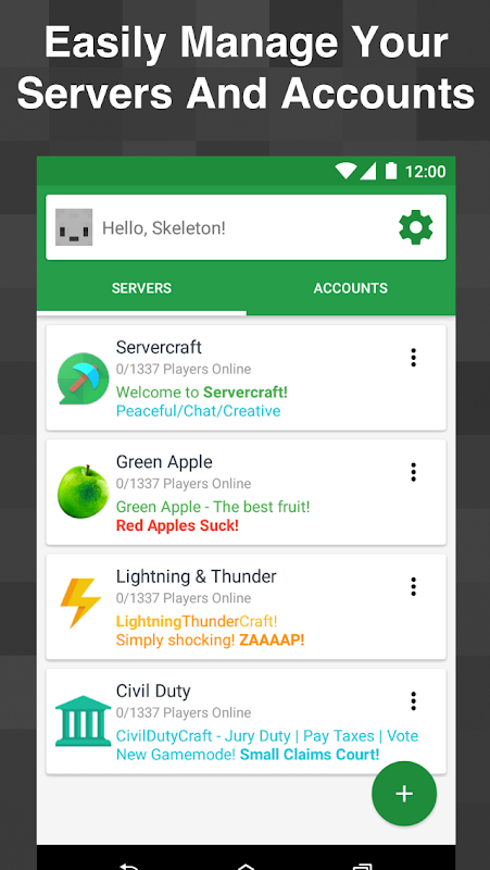 En sevdiğiniz Minecraft sunucuları üzerinde arkadaşlarınızla sohbet edin. Temiz, kaygan ve kolay!
