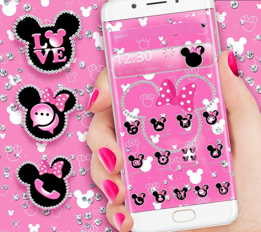 This Pink Diamond Minnie theme is designed with Pink Diamond Minnie theme wallpaper. The Pink Diamond Minnie theme also has amazingly elegant black minnie icon pack for popular apps. Pink Diamond Minnie theme will make you look so cute and black minnie pink style will make you look like an animated cartoon fan of Disney fairy tale world.This Pink Diamond Minnie theme is is perfect thing for all beautiful, cute minnie-loving persons. This high definition theme is just what you need, so don’t waste your time and download it right now, completely free of charge and share it with your friends and family.Get this Pink Diamond Minnie theme now free for android phone. Pink Diamond Mickey theme gives you cute mickey feeling for young girls and children who love disney fairy tale world. Get a sweet Cute minnie valentine gift for your girl and children, and get this nice Pink Diamond Minnie theme now to get a romantic funny fantasy valentine memory.