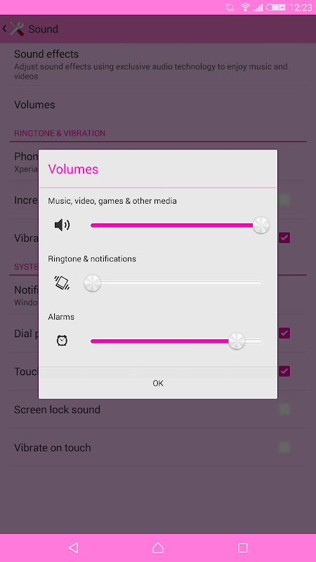 Pembe arka plan ve elemanları ile birlikte Xperia telefonları için Tema
