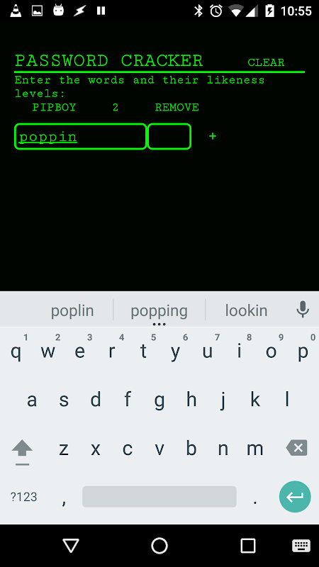 Simple tool to help hack terminals in the vast wasteland. Enter the words you have tried and their likeness levels. The text of each successive word will be green if it is possible to be the password, yellow if it is too short, and red if it is impossible for it to be the password. For best results, pick your first word at random and then make sure each successive word you try is possible (green) to continue.