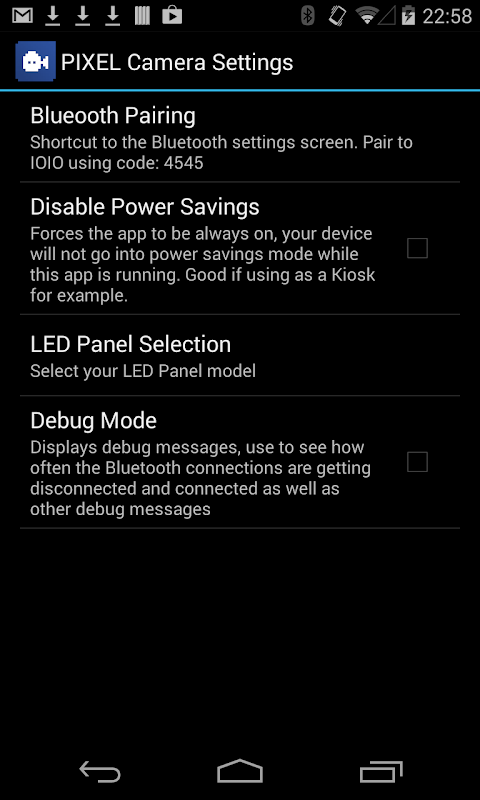LED ART ekran: Bu app akışı ve PIXEL için Android kameradan video kaydetmek için izin verir.