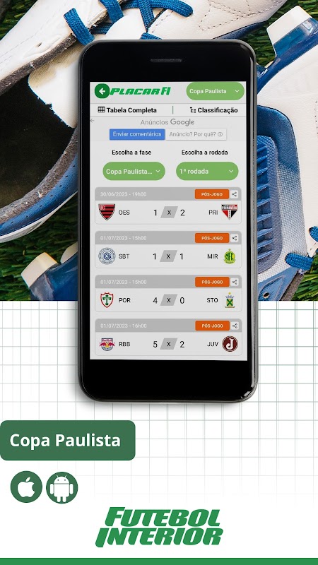 Placar FI do Futebol Interior uygulamasıyla, Brezilya'daki ve dünyadaki başlıca şampiyonalardaki oyunların sonuçlarını gerçek zamanlı olarak takip edebilirsiniz.