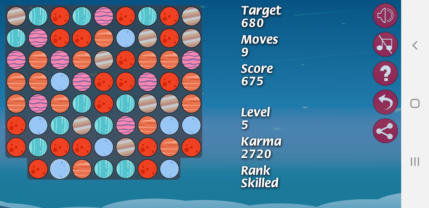 Bir satır veya sütundaki beş gezegeni eşleştirerek sihirli bir gezegen kazanın. Sihirli bir gezegeni normal bir gezegenle değiştirmek, tahtadaki aynı türdeki tüm gezegenleri yok ederek size çok sayıda puan kazandırır. Bir satır veya sütundaki dört gezegeni eşleştirerek elde edilen özel gezegenlerin beyaz bir kenarı vardır. Özel bir gezegen de dahil olmak üzere üç gezegeni eşleştirmek, tüm satır veya sütundaki tüm gezegenleri kaldırır.
