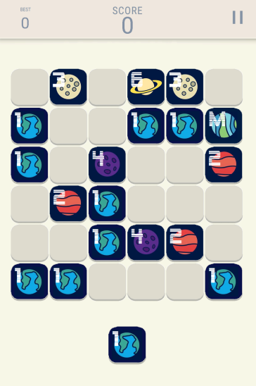 - The goal is to merge all Planet numbers to make biggest Planet number and best score.