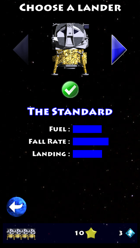 Kendi uzay lander modülünün komutu alın! Yerçekimi, Pilot farklı uzay inenler gezegene değişen garip gezegenleri keşfetmek ve modülü karaya deneyin! Klasik uzay lander oyun: senin iticileri etkinleştirmek için ekranın alt dokunun. Çökmesine dikkatli olun, çok hızlı arazi kalmamak yerçekimi kontrol edin ve yakıt seviyesi göz kulak! Keşfetmek için 60 düzeyleri ve 5 uzay landers Ay'a NASA iniş bir astronot gibi, pilot becerileri denemek!