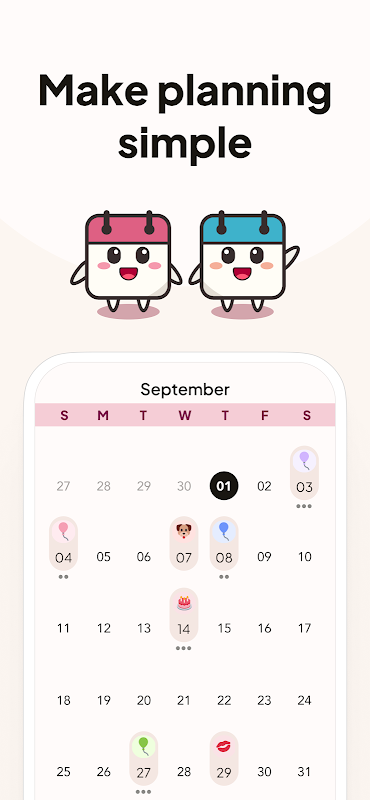 • Çıkartmalar, temalar ve kişiselleştirme seçenekleriyle sevimli bir takvim oluşturun