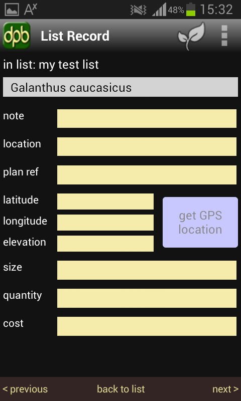 Bitki kayıtları botanik adı (Latin adı olarak da bilinir) tarafından düzenlenir ve aynı zamanda ortak ad ve diğer birçok kritere göre aranabilir. Hepsi olmasa da birçoğunun resimleri vardır ve kolayca daha fazla fotoğraf ekleyebilirsiniz. Veritabanı dosyaları Plant Base'nin PC / Mac / Linux sürümleriyle doğrudan kopyalanarak değiştirilebilir. Android sürümü, bunlar için kullanışlı bir mobil iş ortağı yapar veya kendi başına kullanılabilir.