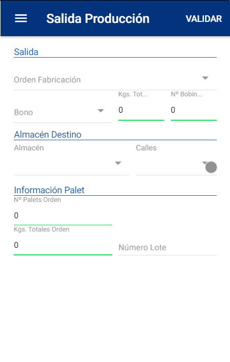 Aplicación para gestionar el almacén, con diferentes movimientos de salida de producción, reubicación y actualización de stock.