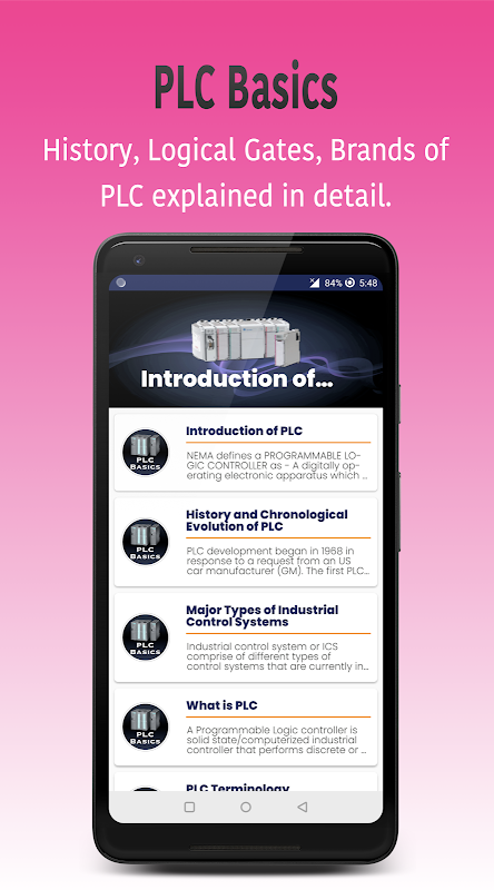 Bu PLC uygulamasının geçmişi, mantıksal kapıları ve iki PLC markasının tanıtımı, syntex, plc yapımı, girişler ve temel programların tanıtılması ile açıklanmıştır. Bu uygulamanın yeni versiyonunda SCADA ve DCS ile ilgili temel bilgiler ve bilgiler içeren yeni iki bölüm eklenmiştir.