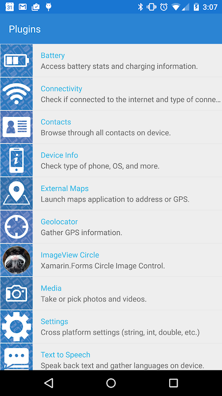 Xamarin için Eklentiler gösteren Demo uygulaması