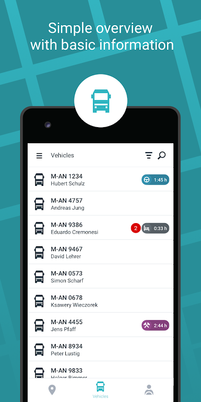 - Arama işlevi, sürücülerin ve araçların izlenmesini kolaylaştırır
