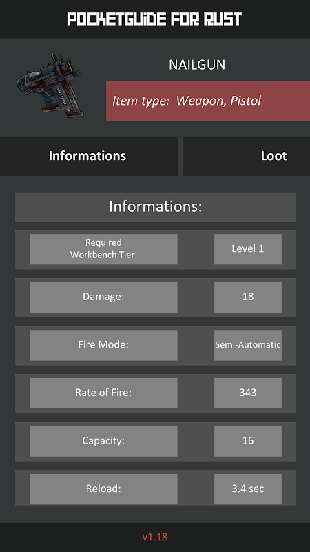 At the moment you can use this application to calculate how much craft ingredients do you need, you can check some informations about the items, like damage output, or how much resources do you get from recycling. Also you can read the changelog about the latest updates.