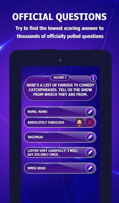 Grafiklerin Zirvesinde 3 yılını kutlayan 1 numaralı trivia uygulaması! Alexander Armstrong ve onun Sayısız Arkadaş Richard Osman'a, şut-hit BBC One yarışması gösterisinde 'Pointless Celebrities' oyununda kendi oyununa katılın!