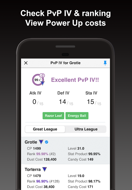 - Yüksek IV, Büyük ve Ultra Liglerde PvP için ideal olmayabilir. PvP için en uygun IV, savaş performansını CP sınırının altında en üst düzeye çıkaran ve her Pokemon için farklı olan çok özel bir kombinasyondur. PvP IV'ü kontrol etmeden transfer etmeyin! Bu gizli mücevherleri kaçırmayın.