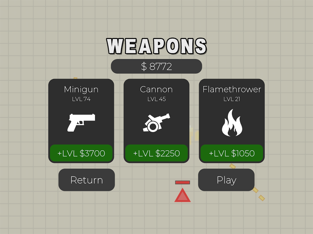 Her dalgadan sonra para kazanın ve daha fazla hasar vermek, daha hızlı ateş etmek veya daha uzun süre hayatta kalmak için silahlarınızın seviyesini yükseltin. Her biri benzersiz güçlere ve stratejilere sahip Makineli Tüfekler, Toplar, El Bombası Atarları ve daha fazlası arasından seçim yapın.