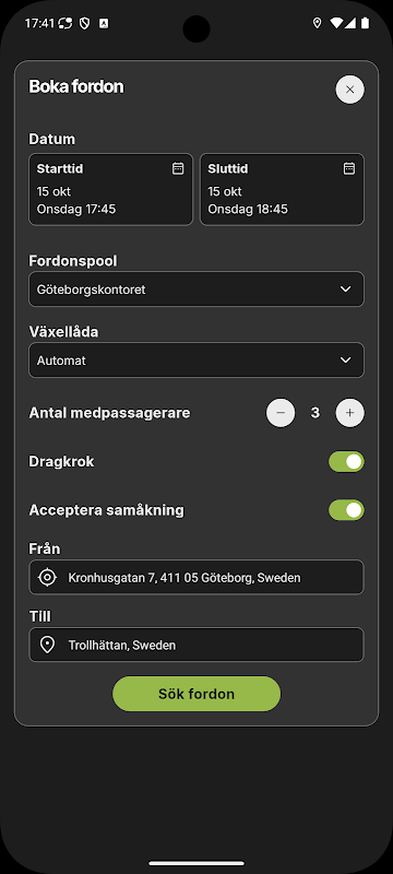 Manuel olarak başlatma ve durdurma gerekmez, seyahatleriniz otomatik olarak arka planda kaydedilir. Portify GO belgeleri kalkış ve varış zamanı, kalkış ve varış adresi ve kat edilen kilometrelerin sayısı ile yapılan seyahatleri tamamladı. İş gezileri için, doğrudan uygulamada gezinin amacını belirtmeniz yeterlidir. İsveç Vergi Dairesi için temel olarak eksiksiz bir dokümantasyona sahip olmanız için.