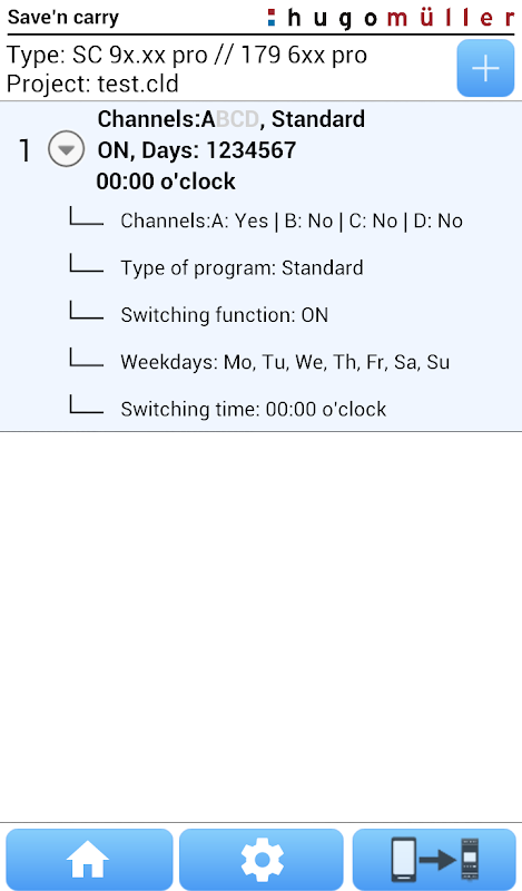 Hugo Müller Kaydet 'n taşıma APP çok kullanışlı bir aksesuardır. mobil cihazınızda veya PC'nize de rahatlıkla anahtarlama programı veya ürün yapılandırması oluşturmak ve doğrudan NFC vie veya dolaylı ürününüze pro bluetooth / USB adaptörü PP 60.00 yoluyla ya veri aktarımı.