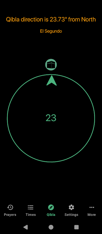 Ezan alarmları, namaz programı ve kıble yönü ile İslami namaz vakitleri.